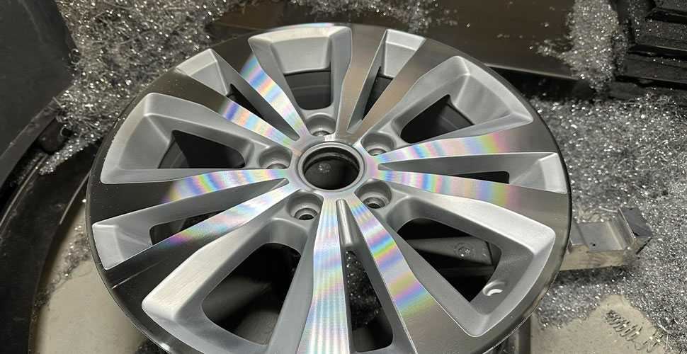 Precision diamond cutting involves removing a thin layer of aluminium from the alloy wheel using specialist lathing equipment.