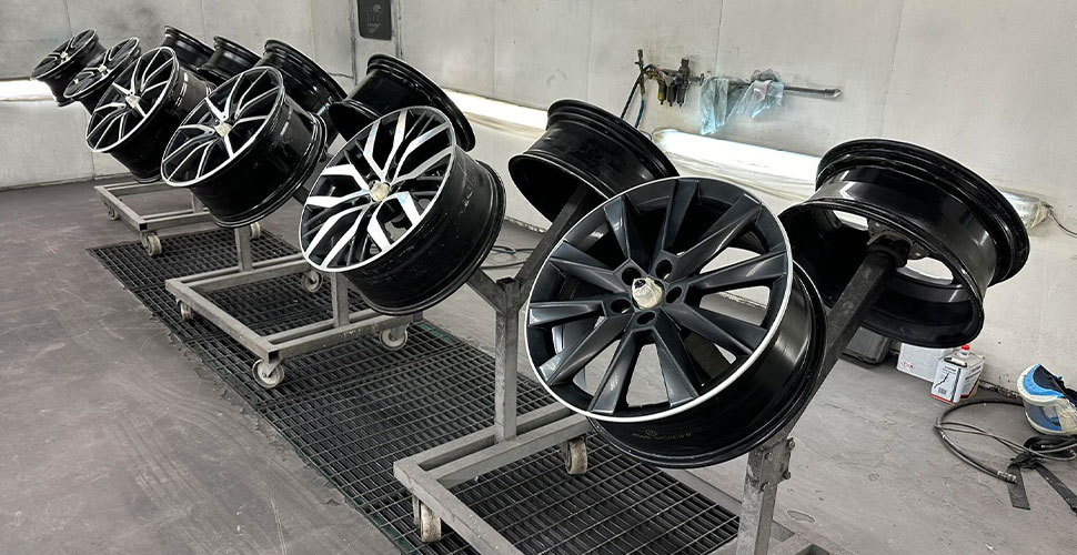 GET A QUOTEYour existing alloy wheels can be quickly and easily repaired, refurbished and re painted in our booths at our bodyshop facility in Peterborough to look as good as new, saving the expense on a new alloy wheel in many instances. Either sprayed & baked in a low bake oven or bead blasted and powder coated.